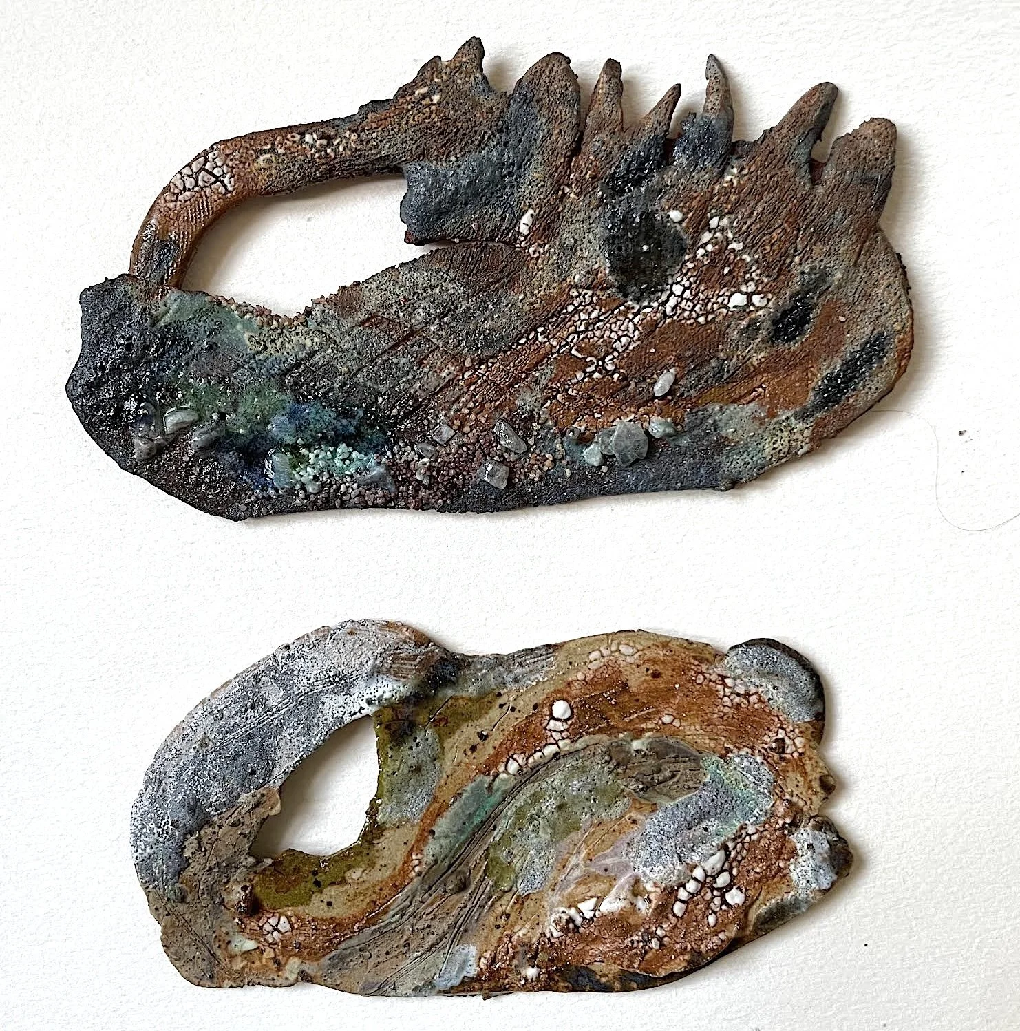 Eyemouth Clay , Seaweed indentations, sand, multiple glazes